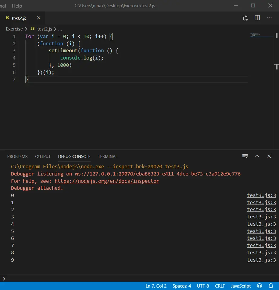 用以上的方法就是把异步函数setTimeout()放进闭包里使它可以获取到每次循环的i。