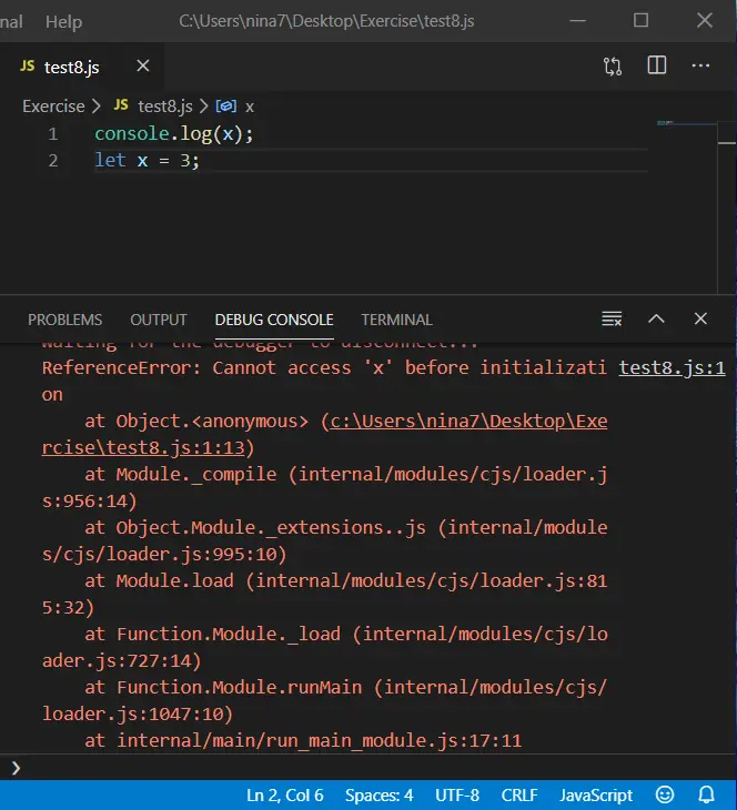 如果在一个局部作用域内用let声明一个变量,该局部作用域就会绑定这个变量,在这个作用域内执行的程序无论在变量之前还是之后都不会再向上查找其他变量,这就是暂存死区的原理。