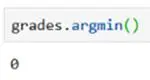 argmin()函数将返回最小值的索引。若对之前使用的数组应用这一函数,它将返回最小值的索引位置: