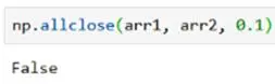 如果以0.1的偏差调用allclose()函数,则返回False:
