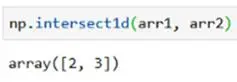 intersect1d()函数将返回两个数组的交集——两个数组中的共同项。与以前的函数不同,它不会返回索引位置,而是会返回实际值。