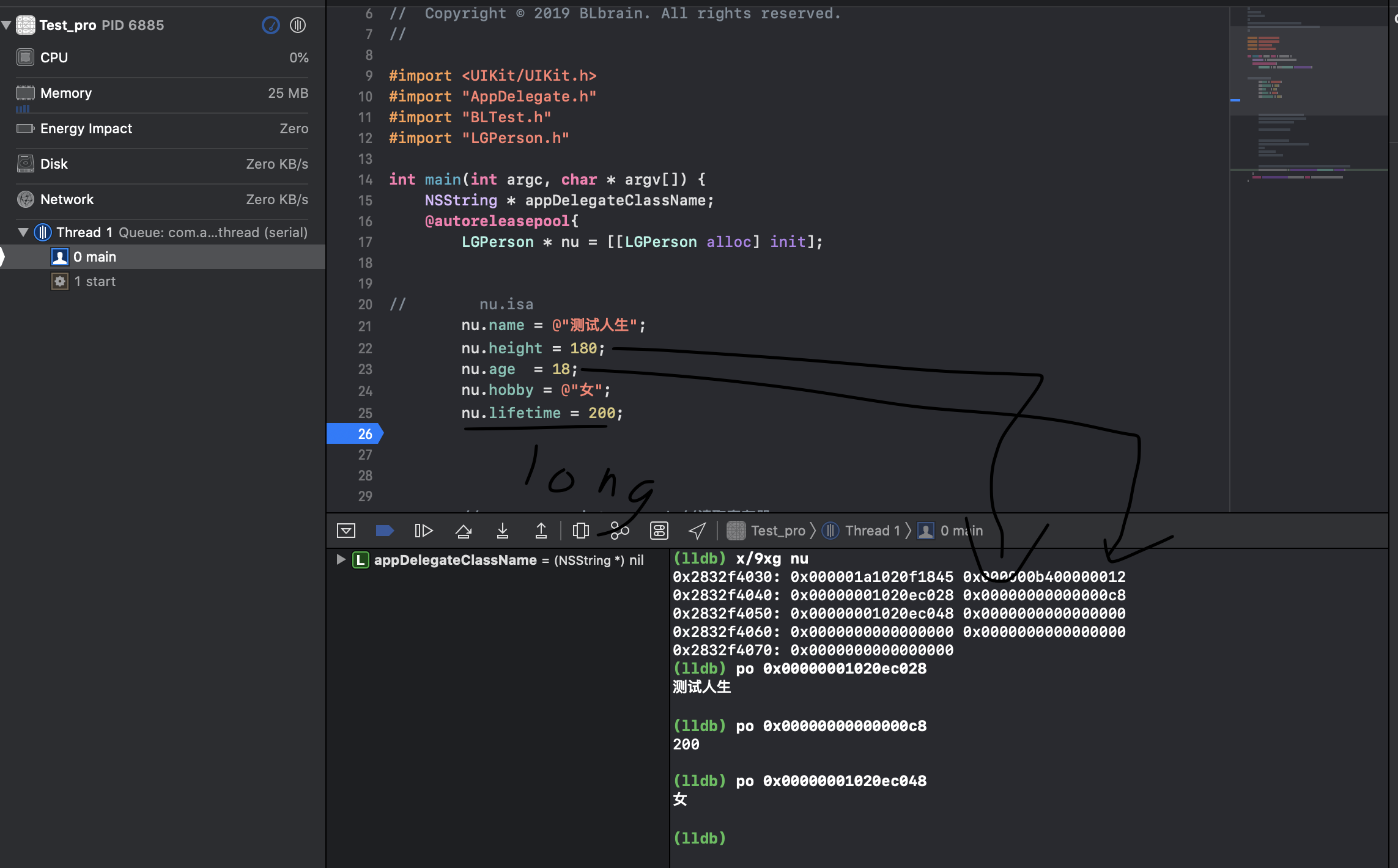 NSObject 属性分析 BLBrain 2020-01-04 315 阅读1分钟 问题/目标分析 在上一步我们找到了内存中定义的方法存放的位置,以及属性的定义位置。但是对于每个实例来说,其属性是独有的。这里来寻找其在内存中存放的位置。 方法分析 使用lldb 命令打印内存信息,找到属性对应的内存空间。 实验步骤 定义对象LGPerson,使用x/x4g命令打印内存,发现除第一字段为isa,其他位置为属性,并且属性按8字节对齐。 结果分析 找到了实例属性的存放位置。 总结实验
