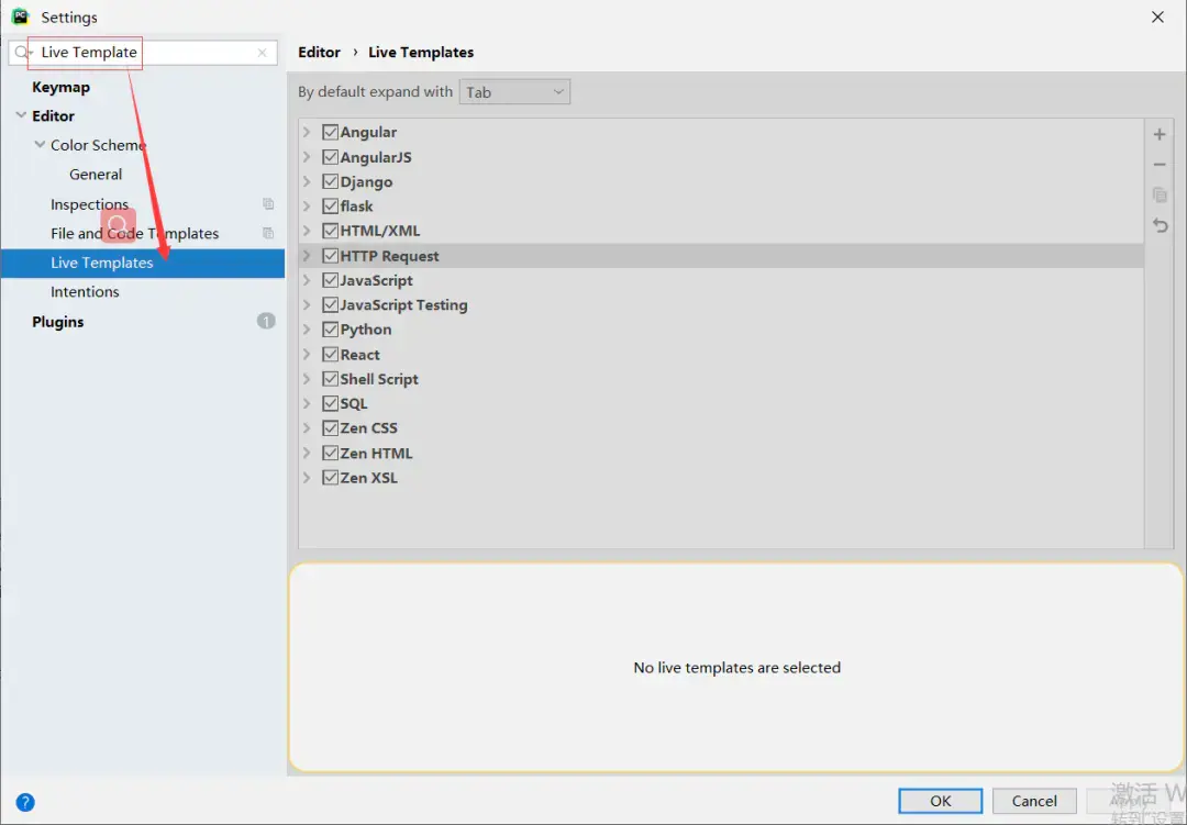 2. 搜索 Live Template,如下图所示。