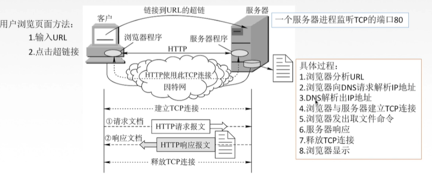 - HTTP采用TCP作为运输层协议,但HTTP协议本身时无连接的(通信双方在交换HTTP报文之前不需要先建立HTTP连接)