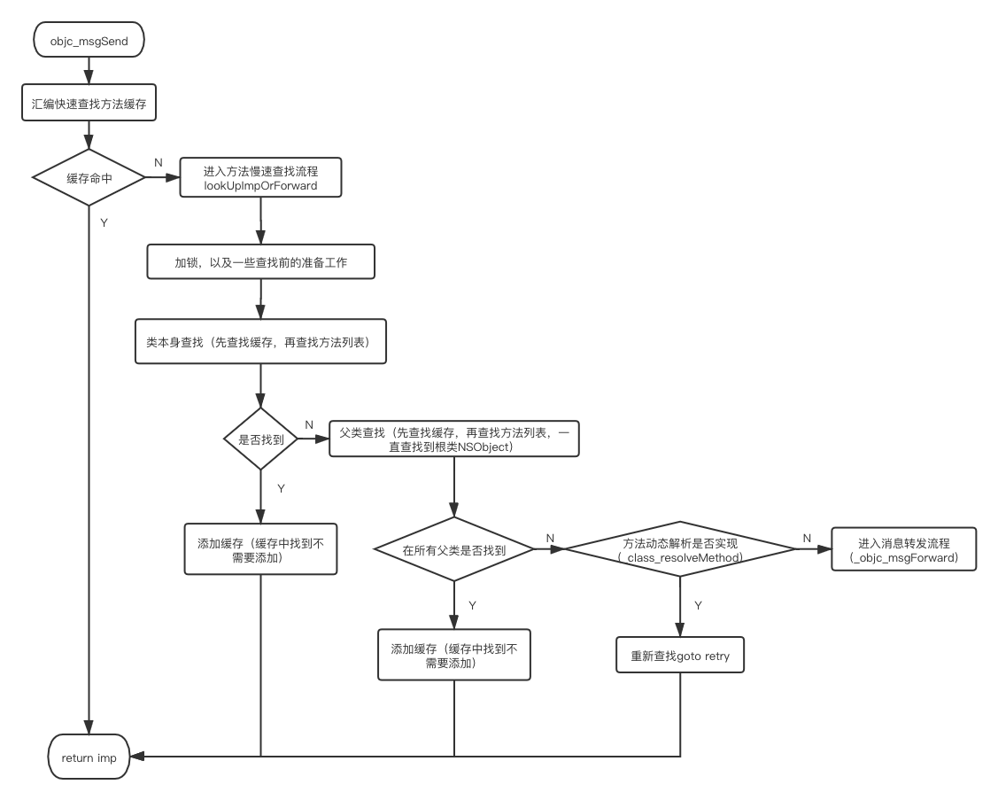 在快速查找流程中,方法缓存未命中。也就是说,快速查找行不通的时候,底层就会走到慢速查找流程,并一路从汇编走到lookUpImpOrForward函数。