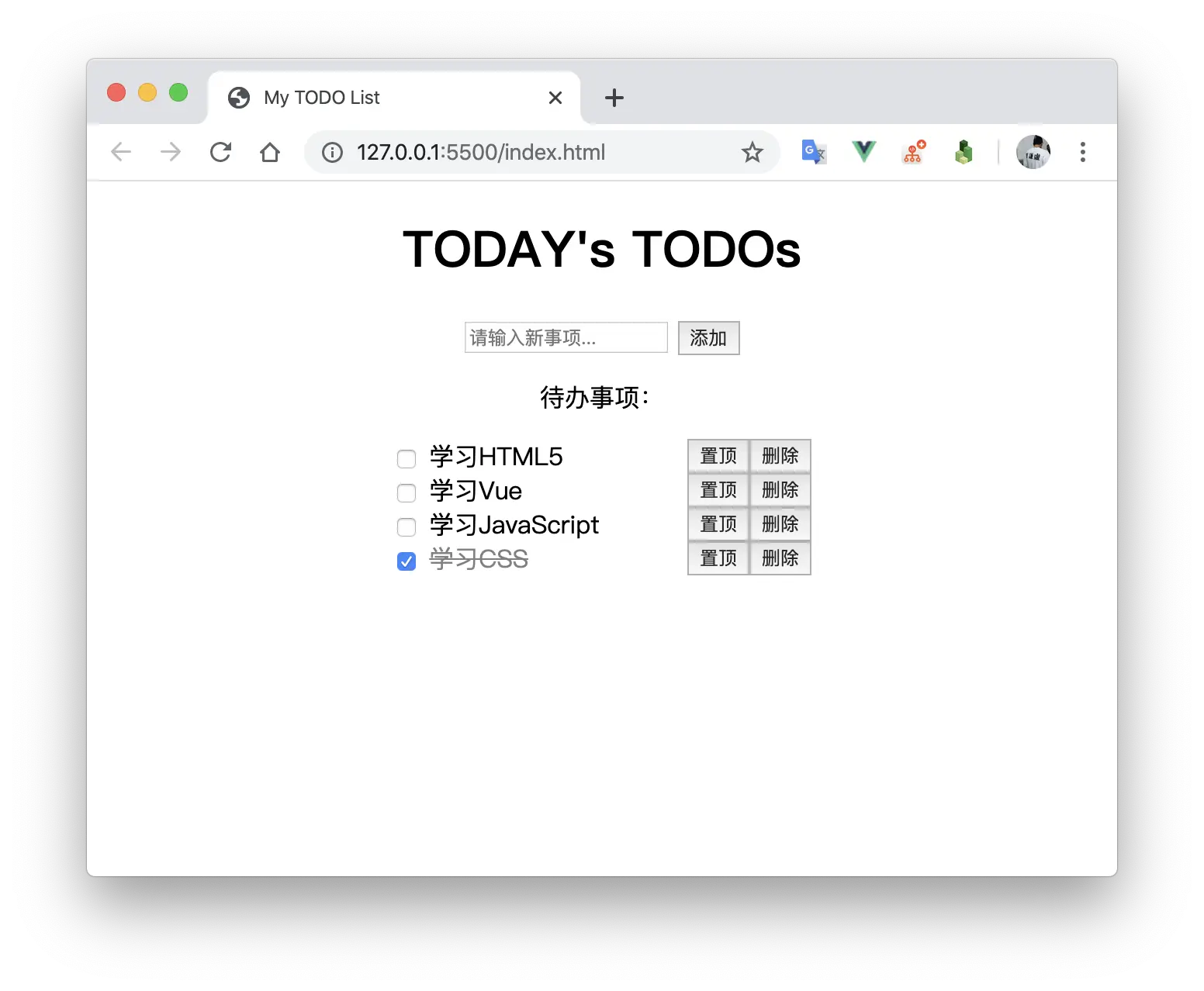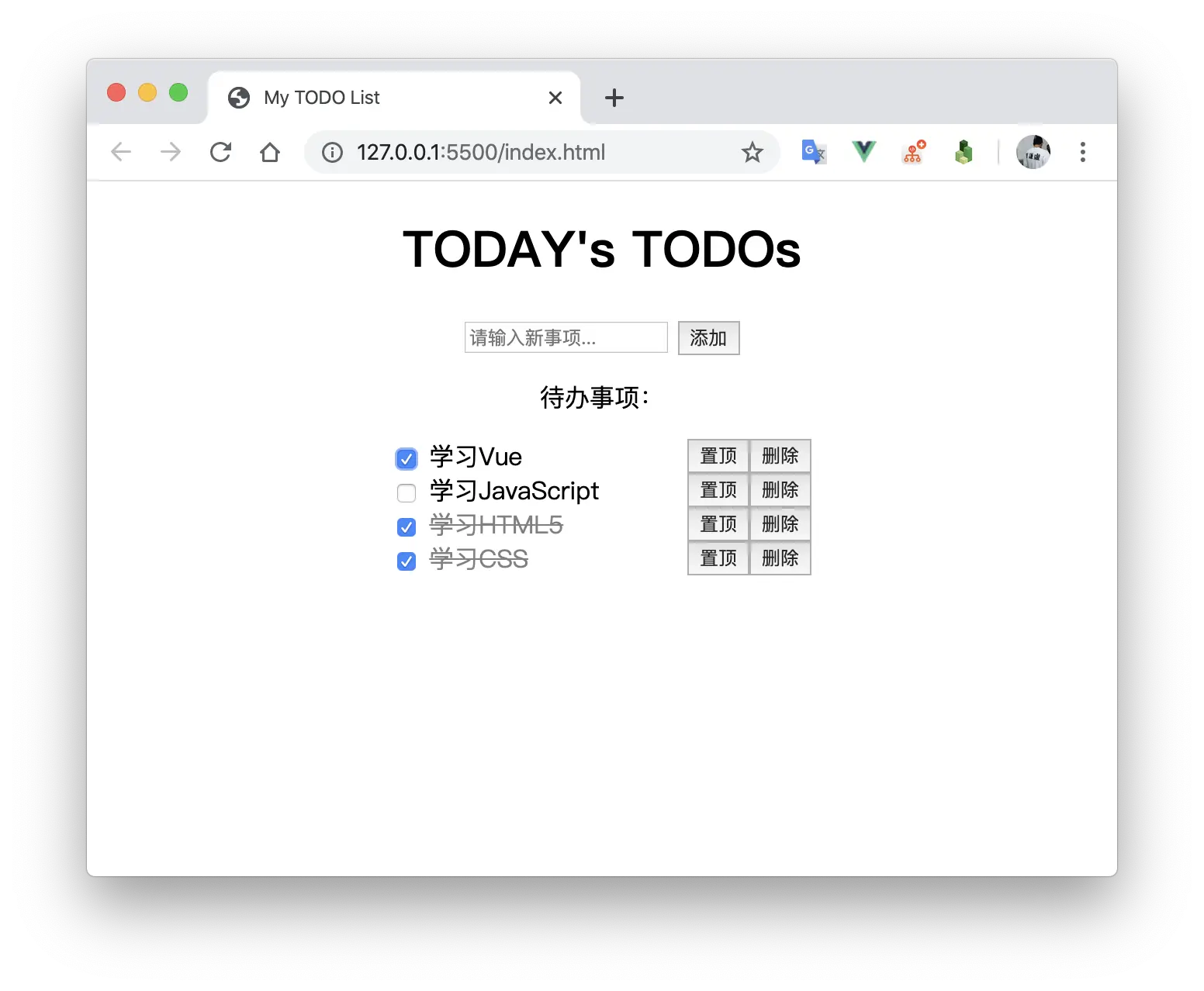 发现,虽然第一个事项是被移到了下面,并且成功修改为已完成,但是随后由于修改了数组产生的新的第一个元素的checkbox也被勾选上了,但是没有出现已完成的CSS效果,并且刷新后就可以正常显示,说明其实际上并没有被修改为已完成。