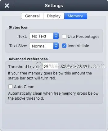在使用RAM密集型程序后,只需单击“可用内存”即可优化Mac的内存。控制菜单栏上的自动清洁,阈值级别和内存信息!