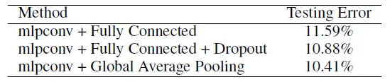 在 CIFAR-10 测试数据集上对比了全连接层和全局平均池化的效果