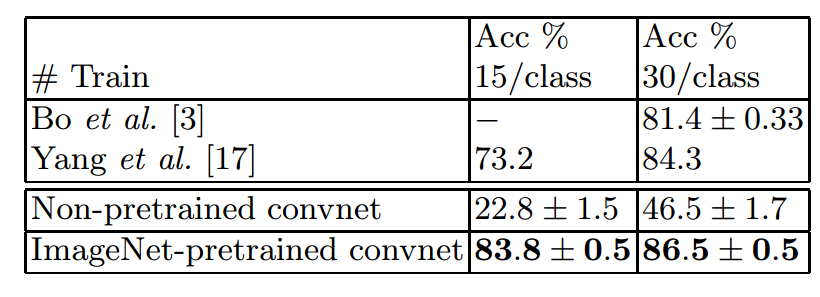 从上表中可以看出,不进行预训练(即从头开始训练 ZFNet)的准确性较低。通过在预训练的 ZFNet 之上进行训练,准确性很高。这意味着训练过的滤波器可以推广到不同的图像,而不仅仅是 ImageNet 的图像。