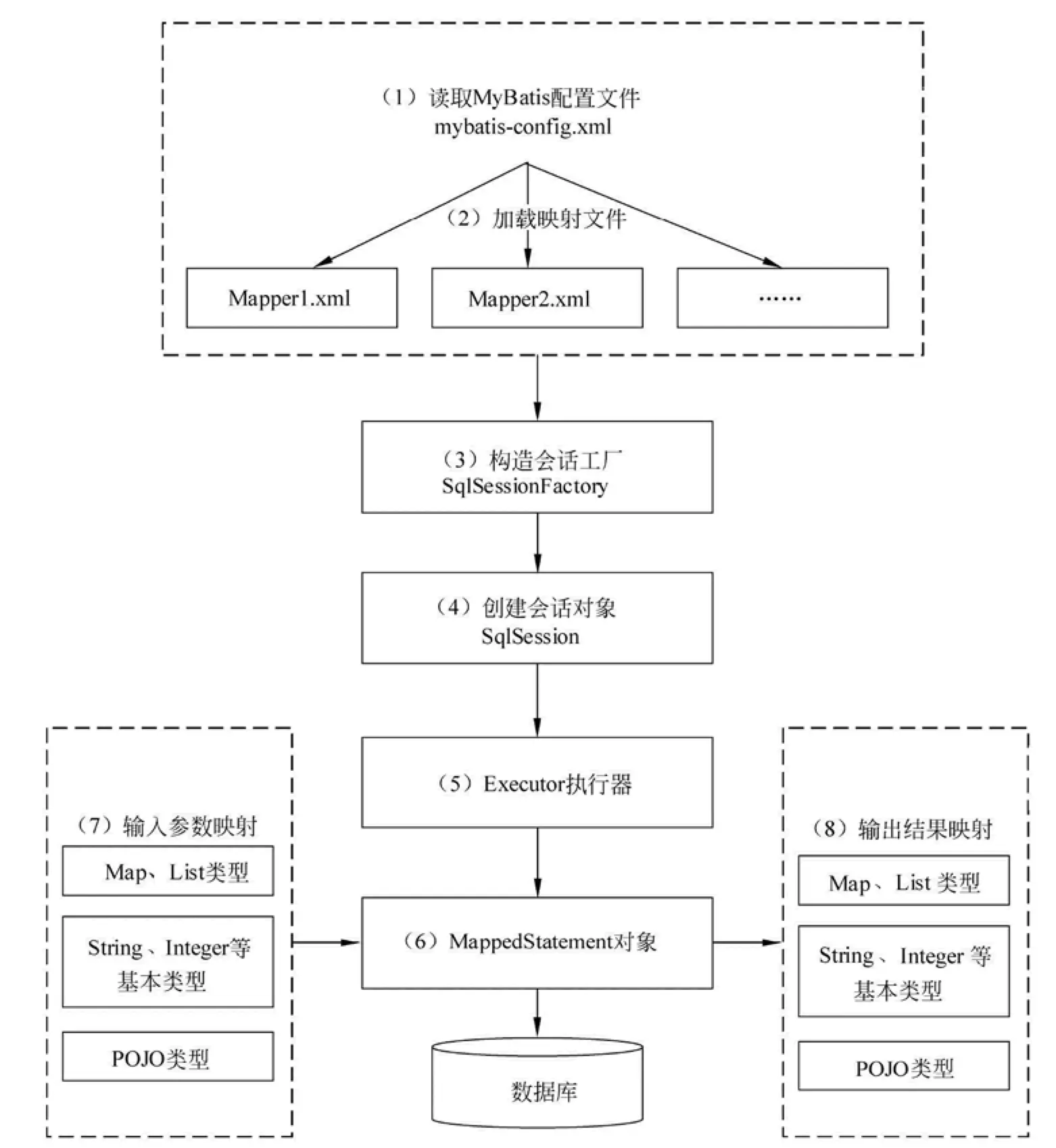 - 输出结果映射:输出结果类型可以是Map、List等类型,也可以是基本数据类型和POJO类型,输出结果映射过程类似于JDBC对结果集的解析过程。