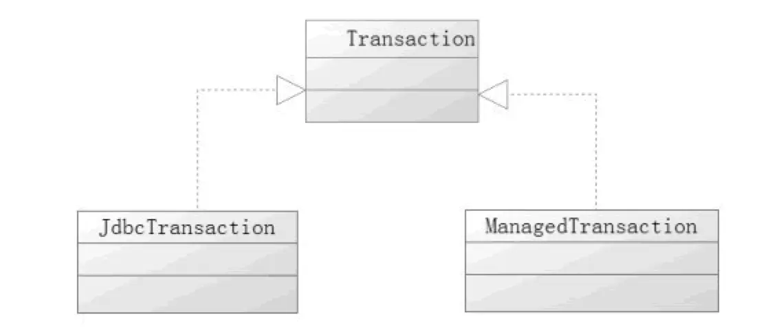 Mybatis为Transaction提供了两个实现类,分别为JdbcTransaction和ManagedTransaction,如图: