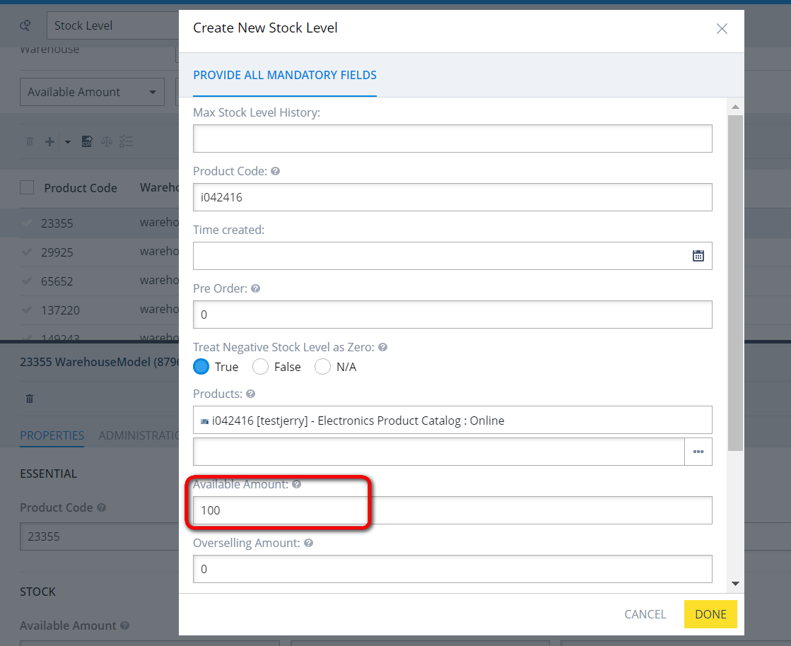 创建一个新的stock level,维护所有必填字段: