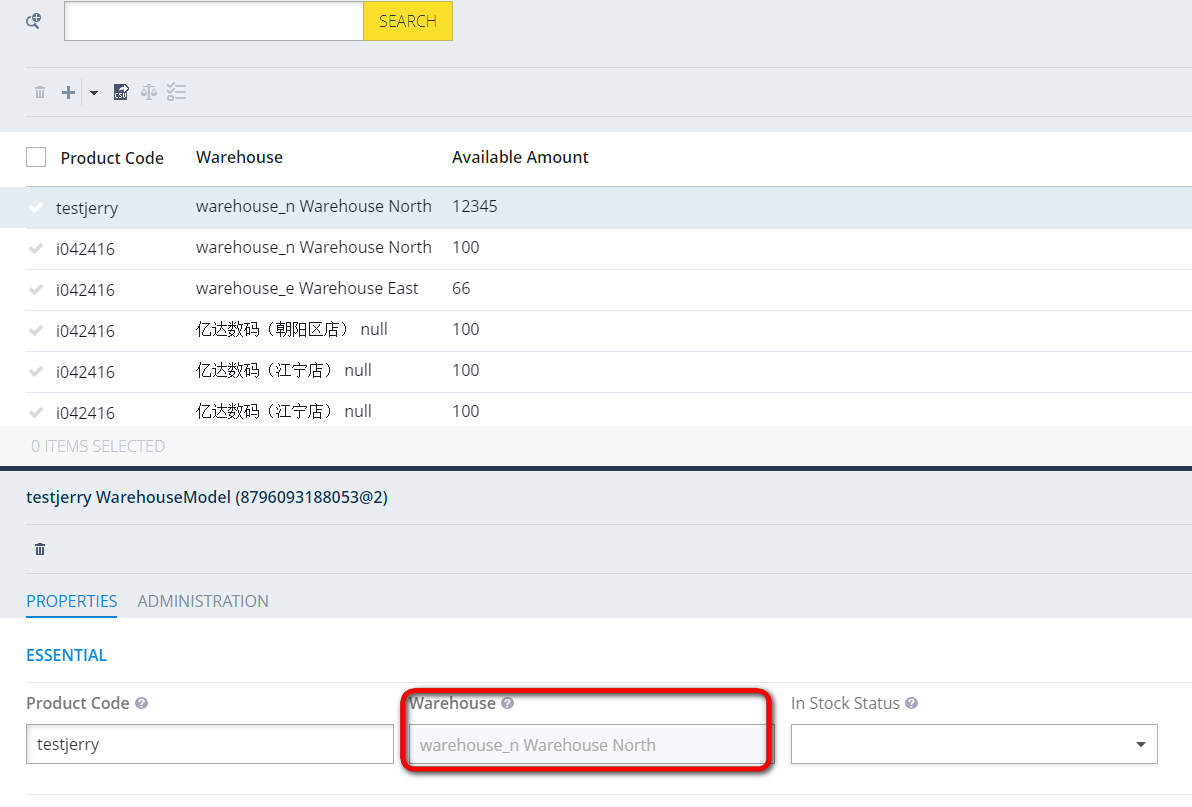 如下图所示:这个名为warehouse_n的仓库,已经包含了我之前创建的包含了product id为testjerry的产品的stock level: