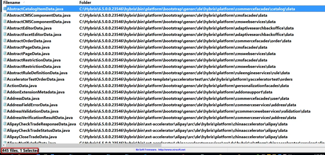Hybris的DTO通常以data.java结尾,在我安装的6.5.0.0.23546这一版本里一共有445个DTO: