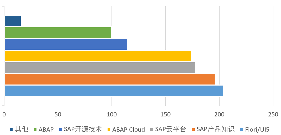 排名第三和第四位的是SAP云平台和云平台上的ABAP开发环境。SAP云平台在SAP以S/4HANA作为数字化核心,实现智慧企业的宏伟蓝图中,扮演着承载客户和合作伙伴创建解决方案的关键角色,学习SAP云平台的重要性不言而喻。