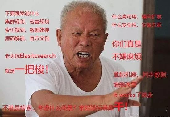 如下图,某公司26岁的程序员王某的Elasitcsearch一把梭用法,能很形象的说出了问题产生的根因。