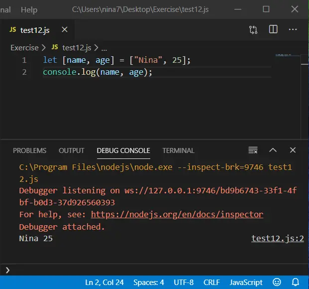 let arr = ["Nina", 25];