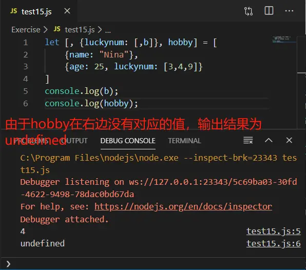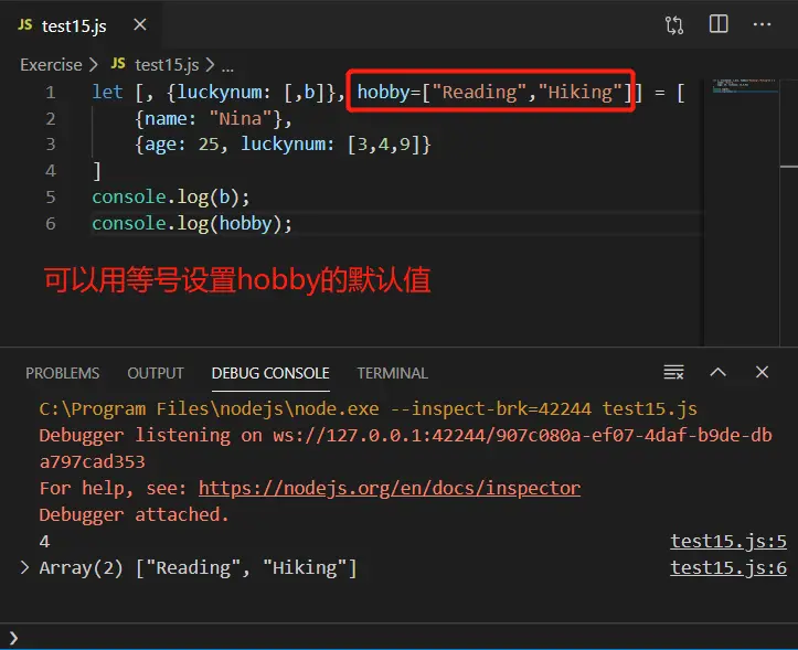 通过解构获取luckynum中的4的代码如下: