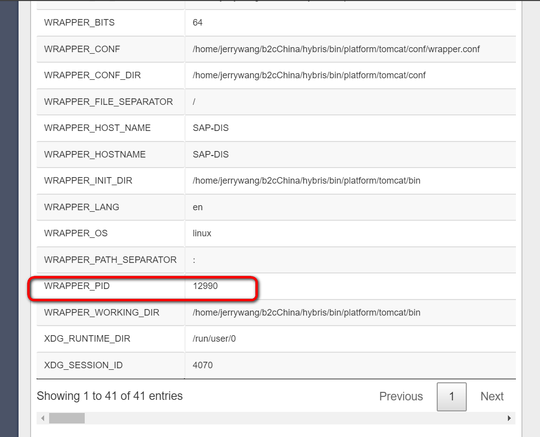 比如这个WRAPPER_PID, 存放的就是Linux系统上启动Hybris应用的进程ID,12990