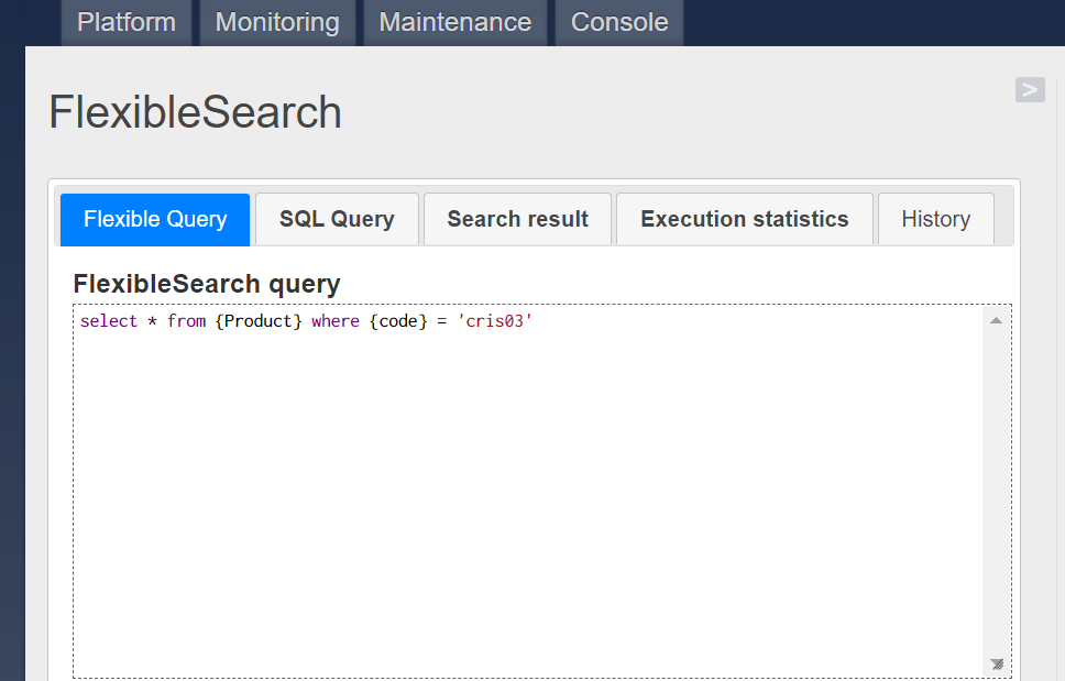 Note: If you are interested to check the TypePKString of just Product, you should execute the flexible query, SELECT DISTINCT {item.itemType} FROM {Product! as item}.