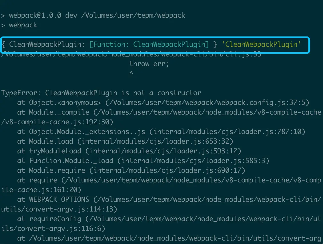 今天学习webpack,遇到一个自动删除dist文件目录的知识点,删除dist文件目录需要用到一个cleanWebpackPlugin的差件,这个插件不是webpack本身的插件所以要用到npm install clean-webpack-plugin -D安装一下,开始按照以前的配置,老用法