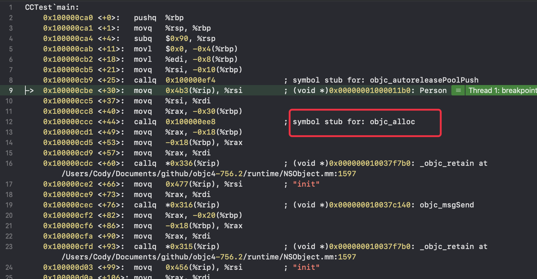 给[Person alloc]加断点
