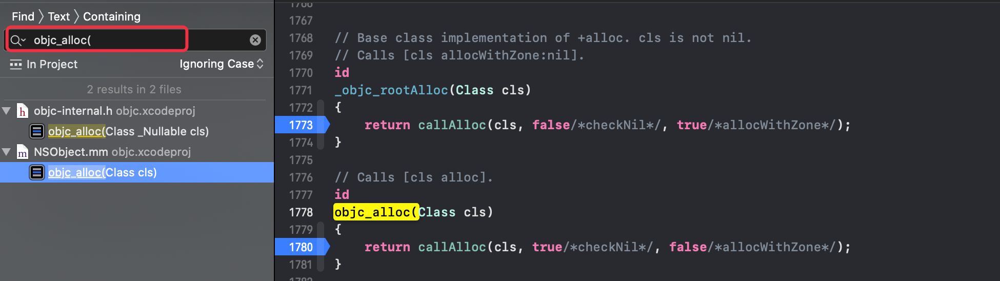 } else if (msg->sel == SEL_allocWithZone) {