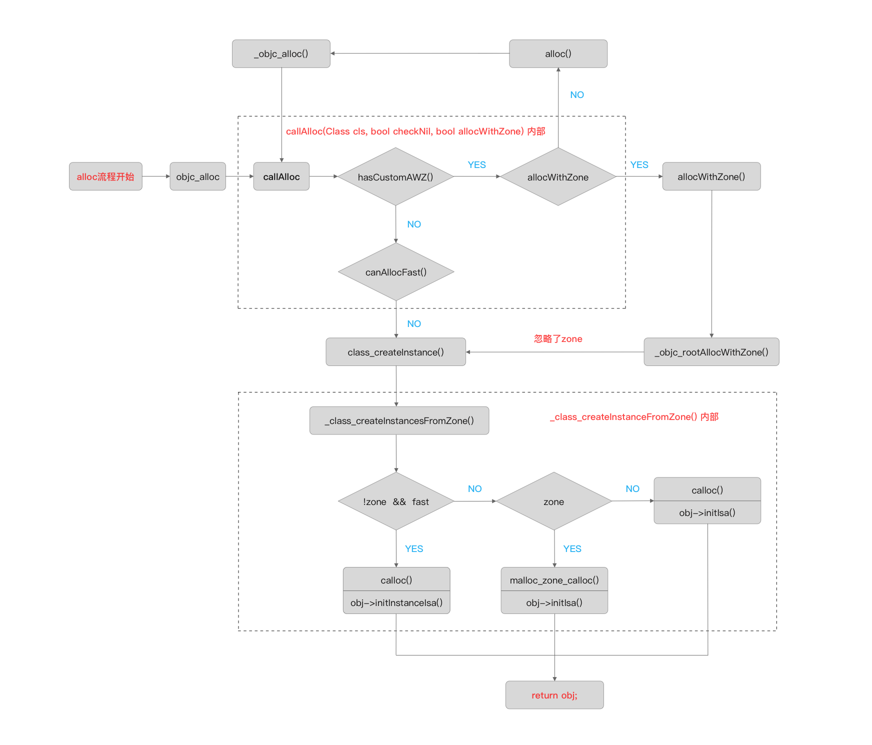 下面用流程图总结一下alloc创建对象的过程
