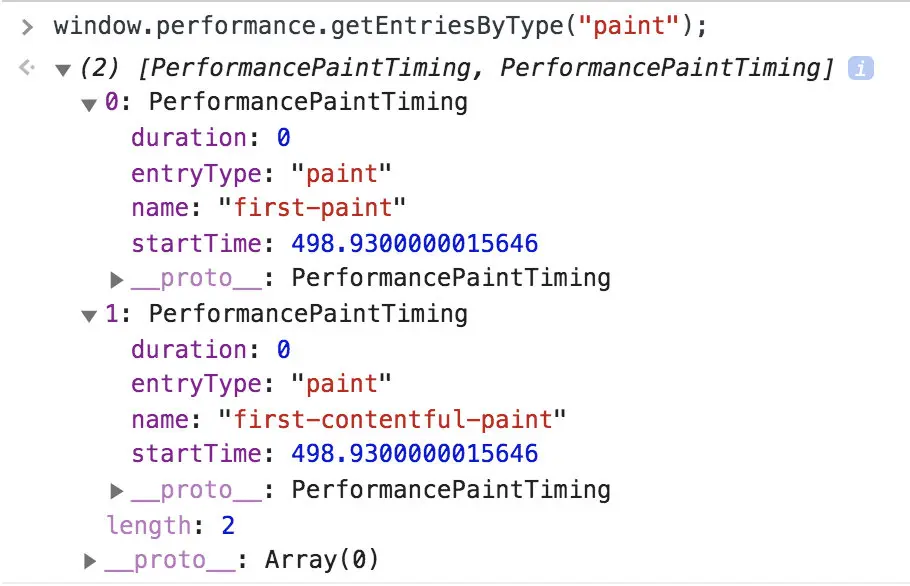 通过这个方法可以获取到所有的 performance 实体对象,通过 getEntriesByName 和 getEntriesByType 方法可对所有的 performance 实体对象 进行过滤,返回特定类型的实体。