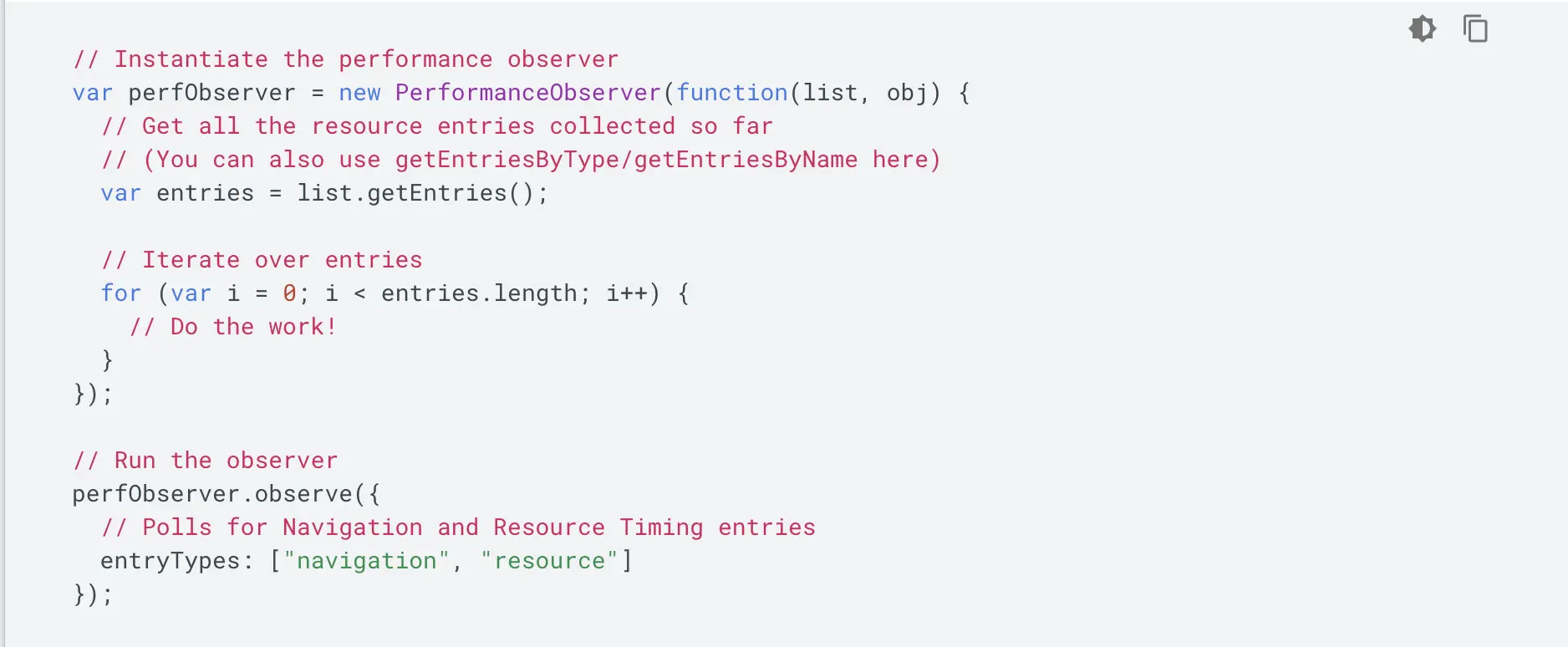 用于检测性能的事件,这个 API 利用了观察者模式。