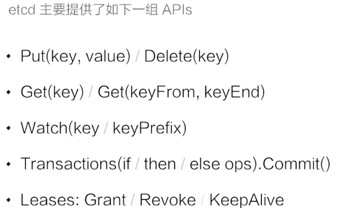 接下来我们看一下 etcd 提供的接口,这里将 etcd 的接口分为了 5 组: