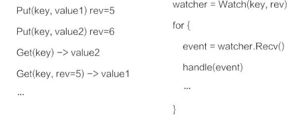第一组是 Put 与 Delete。上图可以看到 put 与 delete 的操作都非常简单,只需要提供一个 key 和一个 value,就可以向集群中写入数据了,删除数据的时候只需要指定 key 即可;