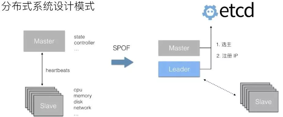 在分布式系统中,有一种典型的设计模式就是 Master+Slave。通常情况下,Slave 提供了 CPU、内存、磁盘以及网络等各种资源 ,而 Master 用来调和这些节点以使其对外提供一个服务(比如分布式存储,分布式计算)。