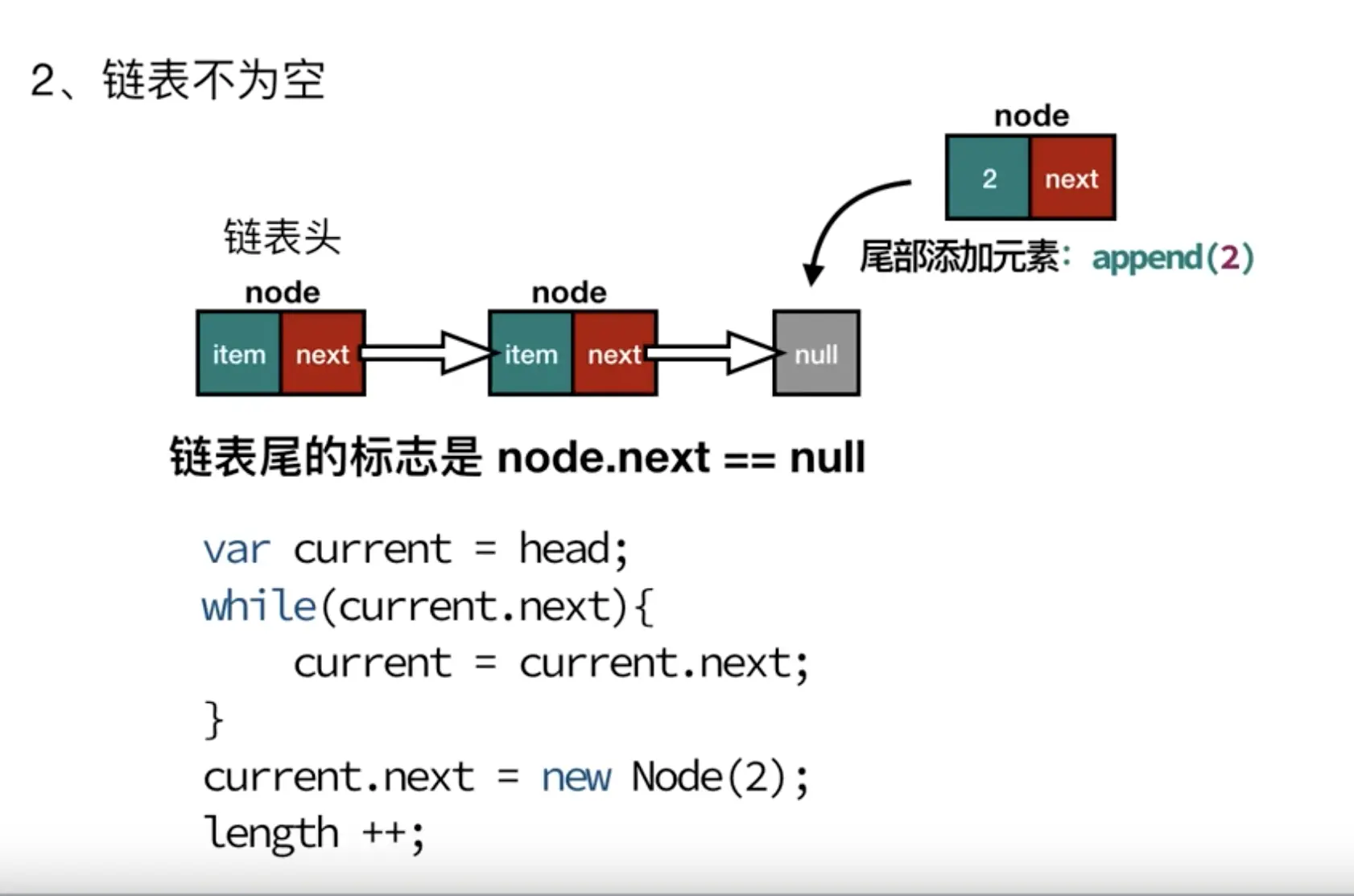 // 在链表尾部追加结点
