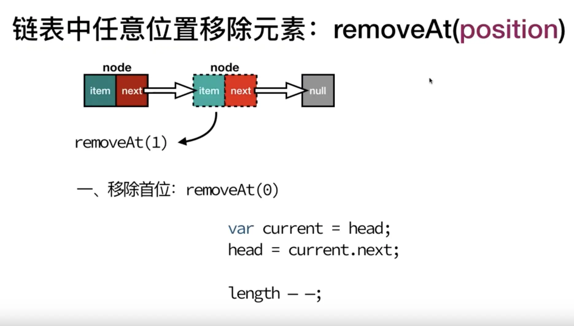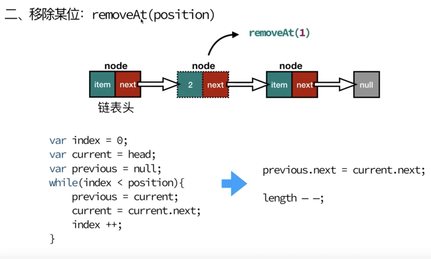 assert.strictEqual(l.removeAt(1).element, 100);
