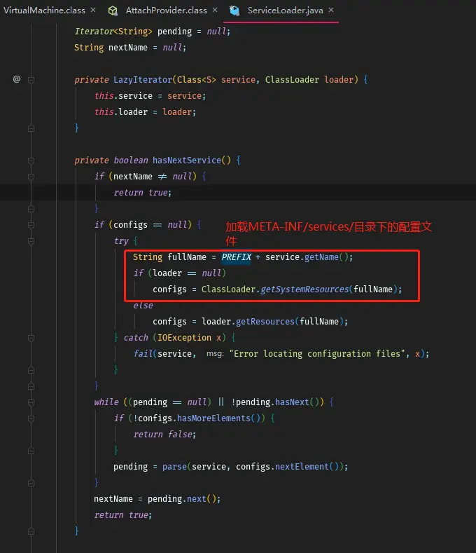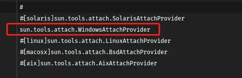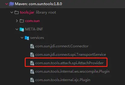 看一下com.sun.tools jar包下的META-INF/services/目录,打开 com.sun.tools.attach.spi.AttachProvider,