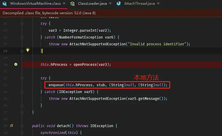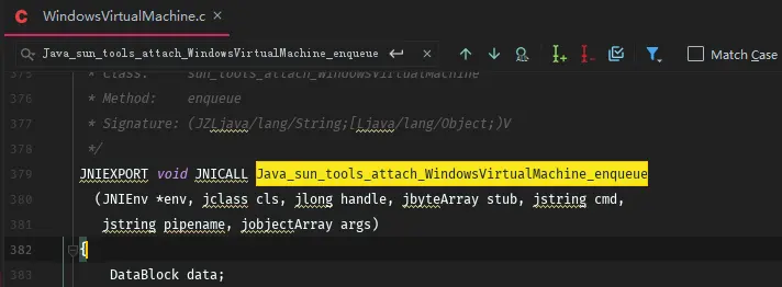 尝试性的在jdk源码里去找这2个方法Java_sun_tools_attach_WindowsVirtualMachine_openProcess和Java_sun_tools_attach_WindowsVirtualMachine_enqueue