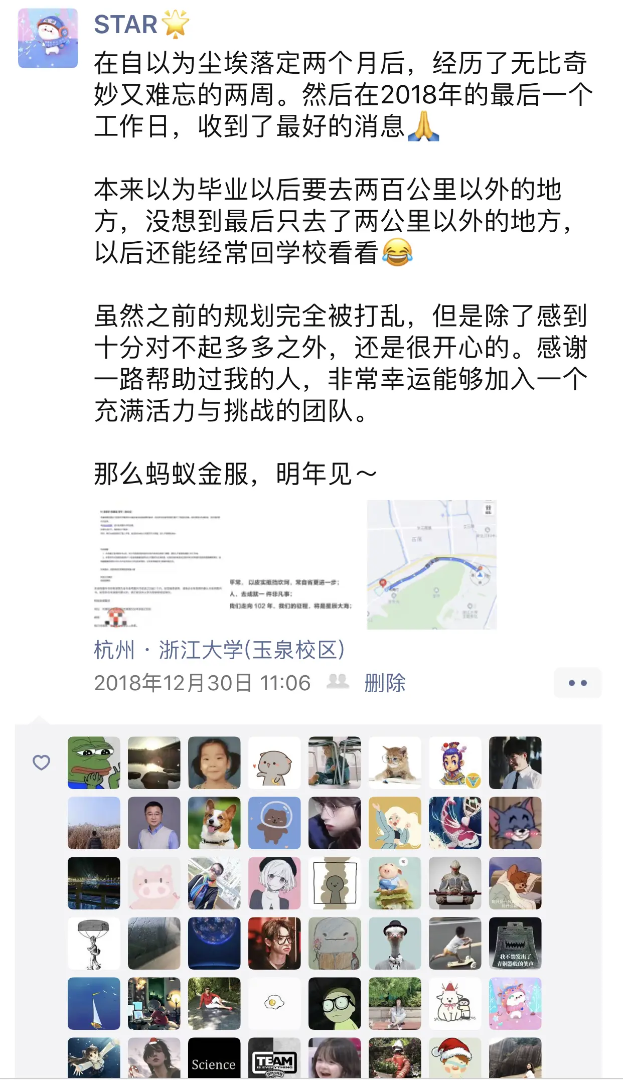 2018年的最后一个工作日,收到了蚂蚁的offer,一切仿佛都在昨天,翻出了当时的朋友圈,依旧感慨万分,这真的是一个对自己未来影响深远的决定。