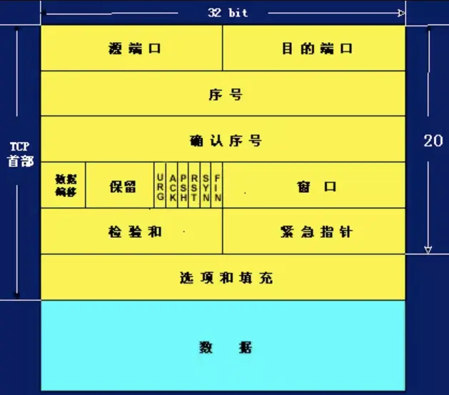 - 标识位置:URG(紧急信号)、ACK(确认标志位)、PSH(为1则收到信息后立即交给进程,无需在队列中等待)、RST(重置连接)、SYN(请求链接)、FIN(结束连接)。