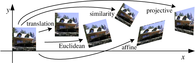 一般来说,仿射变换有6个自由度。根据参数的值,它将在矩阵乘法后扭曲任何图像。变换后的图像保留了原始图像中的平行直线(考虑剪切)。本质上,满足这两个条件的任何变换都是仿射的。