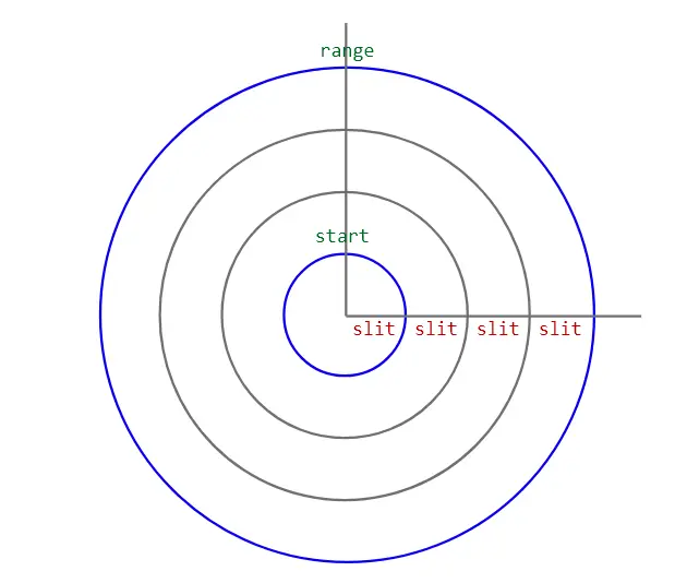 当某个空心圆的半径超过range,那就会到因Circle.__update()方法而回到示意图中start位置。以此实现周期。