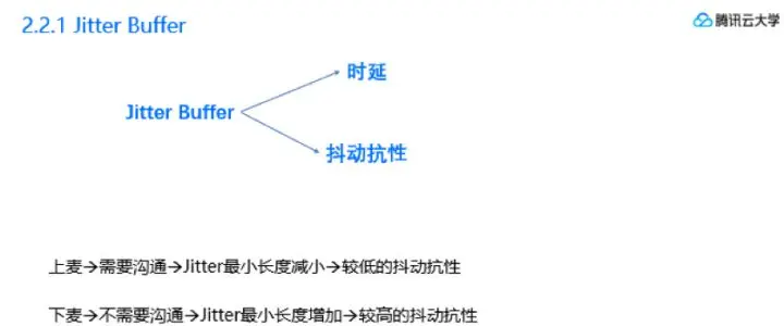 所以后面我会介绍到,GME在下麦时设置的Jitter最小长度要远大于上麦时,以提供更好的网络抖动抗性。比方说直播场景,上麦的时候Jitter设置为400ms,保证沟通,下麦的时候Jitter就直接去到1000ms,保证有很好的抖动抗性。