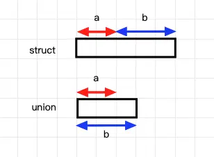 结构体每个成员依次存储,联合体中所有成员的偏移地址都是0,也就是所有成员是叠在一起的,所以在联合体中在某一时刻,只有一个成员有效——结构体内存大小取决于所有元素,联合体取决于最大那个