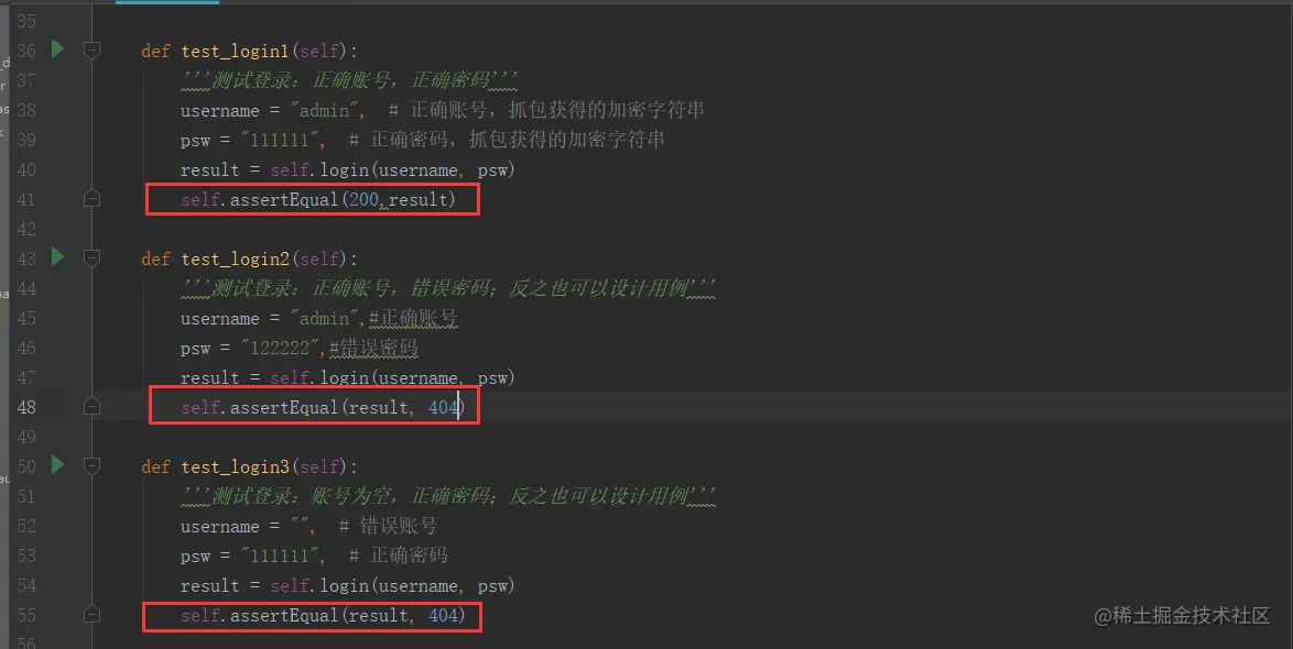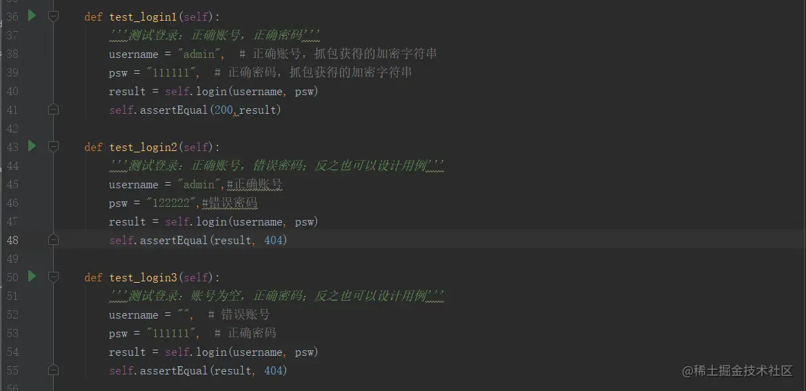 44 '''测试登录:正确账号,错误密码;反之也可以设计用例'''
