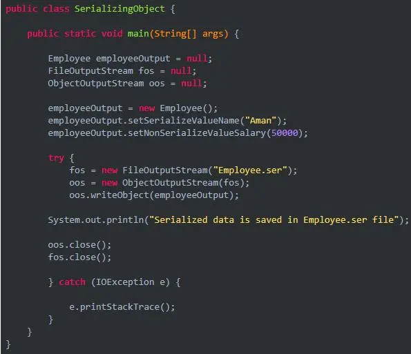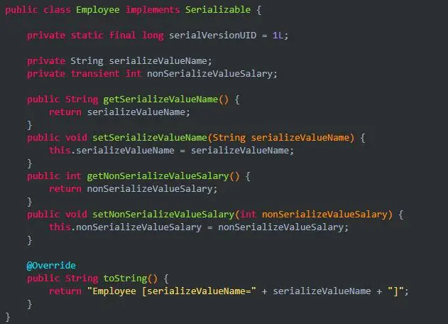 - 静态数据成员和临时数据成员不会在序列化过程中保存下来。所以,如果不想保存某个非静态数据成员,则可以将其设置为transient。