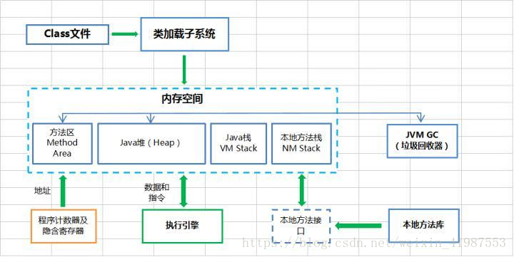 7.执行引擎 : (1)负责执行来自类加载器子系统(class loader subsystem)中被加载类中在方法区包含的指令集,通俗讲就是类加载器子系统把代码逻辑 (什么时候该if,相加,相减)都以指令的形式加载到了方法区,执行引擎就负责执行这些指令就行了。