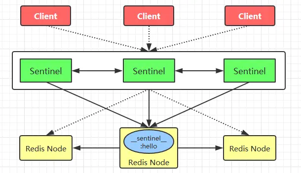 通过以上两步所有的 Sentinel 节点以及它们与所有的 Redis 节点之间都已经彼此感知到,之后每个 Sentinel 节点会向主节点、从节点、以及其余 Sentinel 节点定时发送 ping 命令作为心跳检测, 来确认这些节点是否可达。