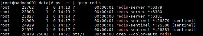 使用 ps -ef | grep redis 命令查看进程,此时输出应该如下: