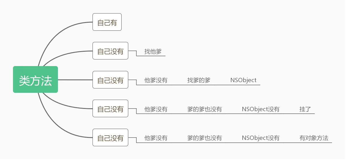 在父类的缓存查找imp,查到就log_and_fill_cache,没有就开始在父类方法列表找(这是逐级查找)