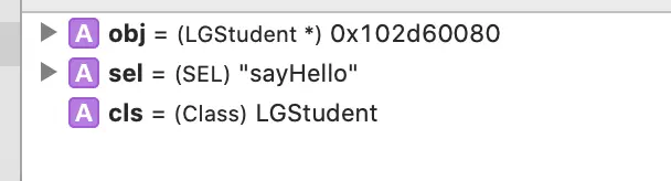 我们通过断点调试,看下obj,sel,cls 分别为什么?